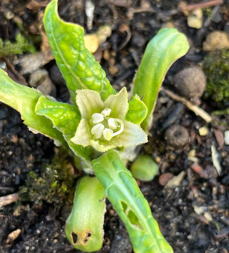 First flower of Mandragora officinarum for 2025! More flowers will emerge with other true leaves as well and will give a more representative shape of this marveillous plant! More details on the website on Mandrake National Collection: https://la-mandragore.eu/