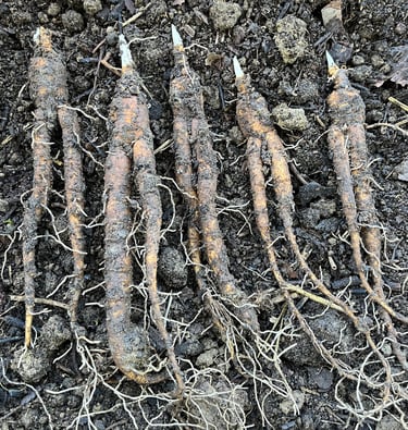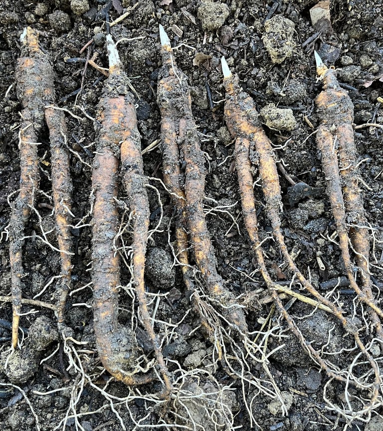 Jeunes et prometteuses "demoiselles" mandragores officinales (encore 2 ans de culture...) Plus de détails sur le site web du Conservatoire National de la Mandragore: https://la-mandragore.eu/