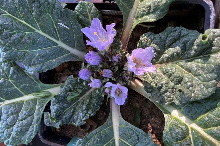 Les mandragores d'automne (Mandragora autumnalis) commencent à fleurir (depuis mi septembre). Les couleurs varient du bleu au blanc en fonction des origines géographiques et qui peut varier d'une plante a l'autre même pour une même origine Plus de détails sur mon site web: https://la-mandragore.eu/